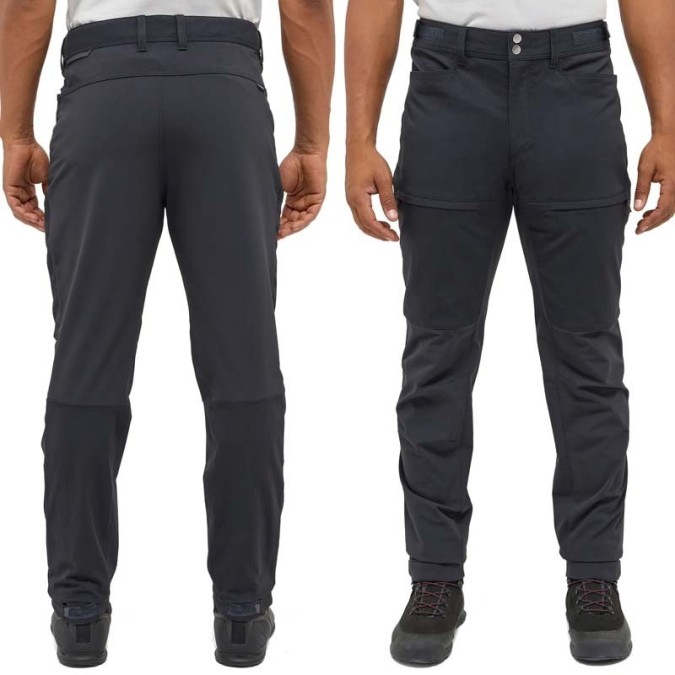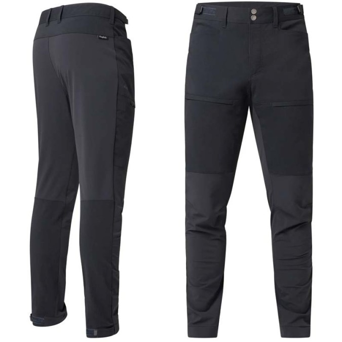 HAGLÖFS 607645-2C5. Pantalones resistentes y flexibles para excursiones de un día, acampadas y viajes de larga distancia. Diseñados para que sean versátiles en su equipo de actividades al aire libre. Están confeccionados con una combinación de dos tejidos duraderos, estratégicamente confeccionados para mayor flexibilidad en los puntos de mayor tensión. La cintura ajustable con velcro, las trabillas para el cinturón y los bajos ajustables ofrecen una comodidad personalizada. Incluyen bolsillos laterales y bolsillos con cremallera en los muslos.