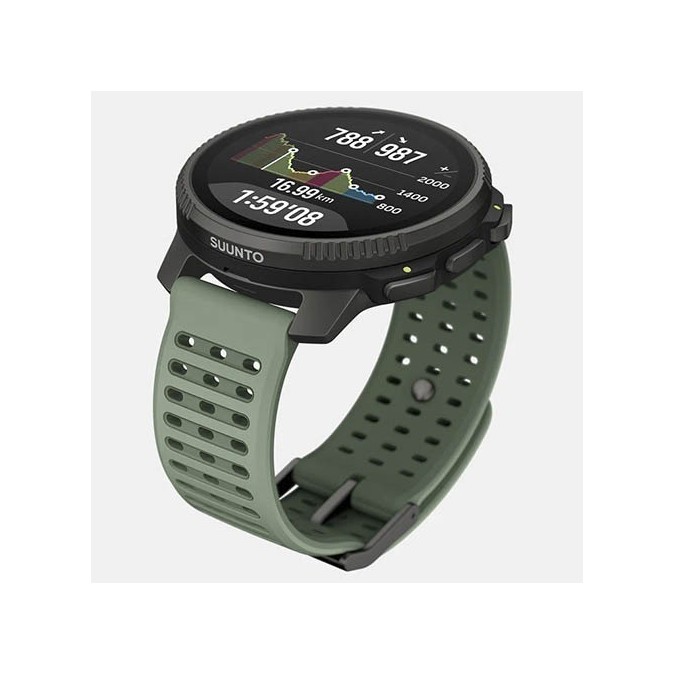 Moniteur de fréquence cardiaque Suunto Vertical 2 Titanium Sage, la montre d'aventure ultime pour les expéditions et l'entraînement en plein air, mais améliorée, en vert. Référence Suunto : SS051209000
