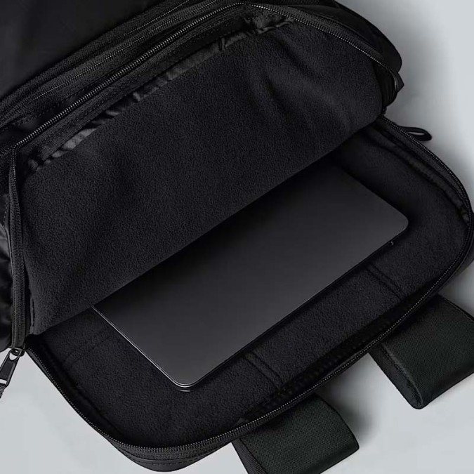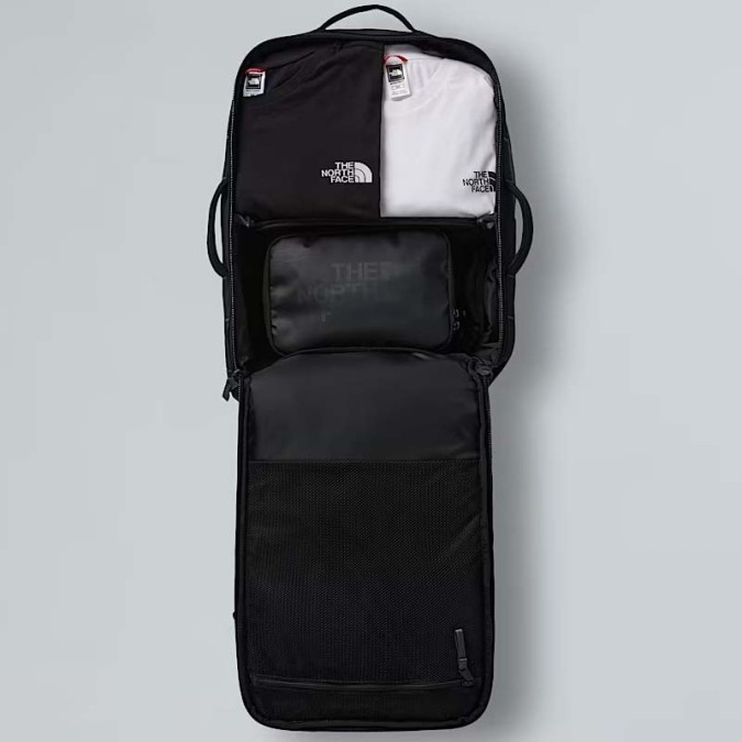 THE NORTH FACE NF0A81DN-KTO. Inspired by iconic Base Camp Voyager Duffel, this daypack is just as light and easy to use, with the same focus on travel rather than back-and-beyond expeditions. The shoulder straps and back panel are padded for long-lasting comfort when hanging around at the airport. It's got a padded laptop sleeve, two water bottle pockets, and - to avoid frustrated rummaging - there's an external zipped pocket with organisation for your passport, phone and other travel essentials. There are three padded handles that make hauling the pack a breeze and a luggage pass-through that lets you attach the pack to rolling luggage. Plus, being made from recycled materials, it's a kind choice for nature. Fill it with everything you need for the day's adventures.