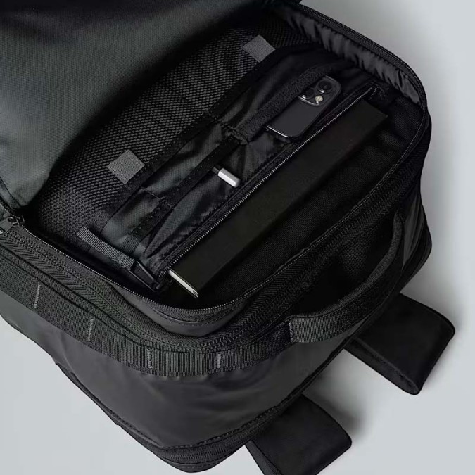 Daypack features iconic water- and abrasion-resistant Base Camp Voyager fabric.
