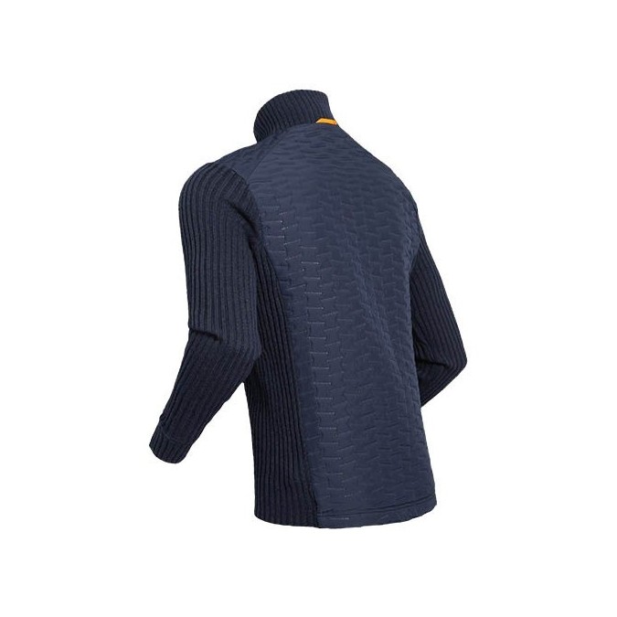 Expanding the Comfy collection, the Full Zip Comfy Jacket is the ideal companion for your active lifestyle, whether relaxing after a workout or enjoying your free time. With seamless ultrasonic quilting on the front and back, this mid-layer offers wind resistance. Made from the same comfortable merino wool blend as the Half Zip Comfy Jacket, this jacket guarantees warmth and comfort. The ribbed knit fabric, high collar, and thumbholes reduce heat loss in sensitive areas. It includes a chin guard to protect it from the zipper. Two practical zippered side pockets for your belongings. For those seeking comfort after training or during low-intensity activities, the Full Zip Comfy Jacket is your perfect ally. Whether you're going to or coming back from training, or are in active recovery, the Full Zip Comfy Jacket is the ideal choice.