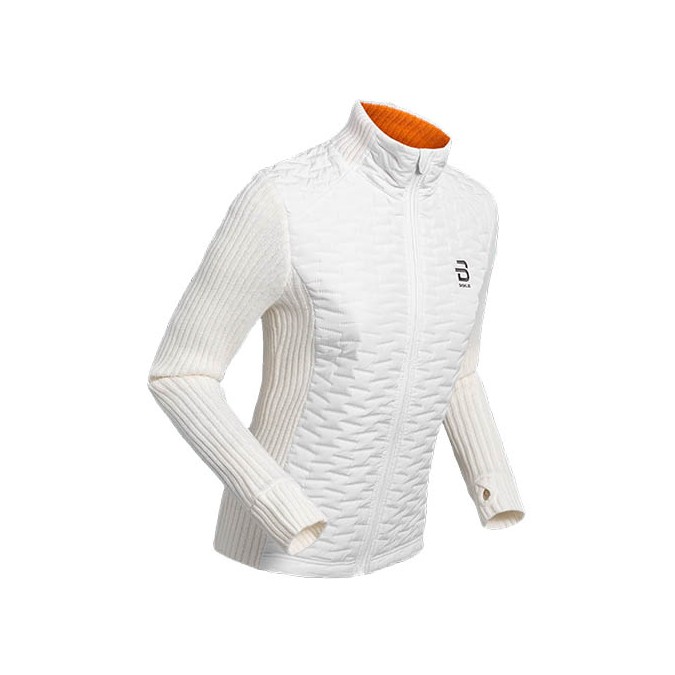 DAEHLIE 334031-10000. Expanding the Comfy collection, Full Zip Comfy is the perfect partner for your active lifestyle, whether you're winding down after a workout or enjoying some leisure time. Featuring stitchless ultrasonic quilting on the front and back, this midlayer provides wind resistance. Crafted from the same comfortable Merino wool blend as the Half Zip Comfy, this jacket ensures warmth and comfort. The rib knit, high collar and thumbholes reduce heatloss from vournerable areas. A chin guard for protecting your chin against the zipper. Two practical zippered side pockets for your belongings. For those dedicated to staying comfortable post-training or during slow-pace activities, the Full Zip Comfy is your trusted ally. Whether you're on your way to or from training, or on your active recovery, Full Zip Comfy is the perfect choice.